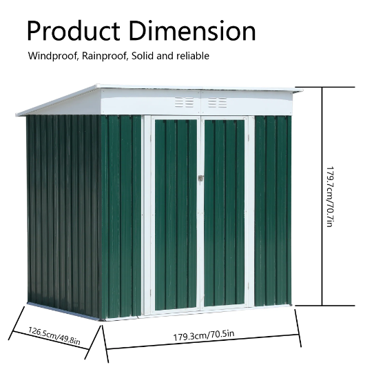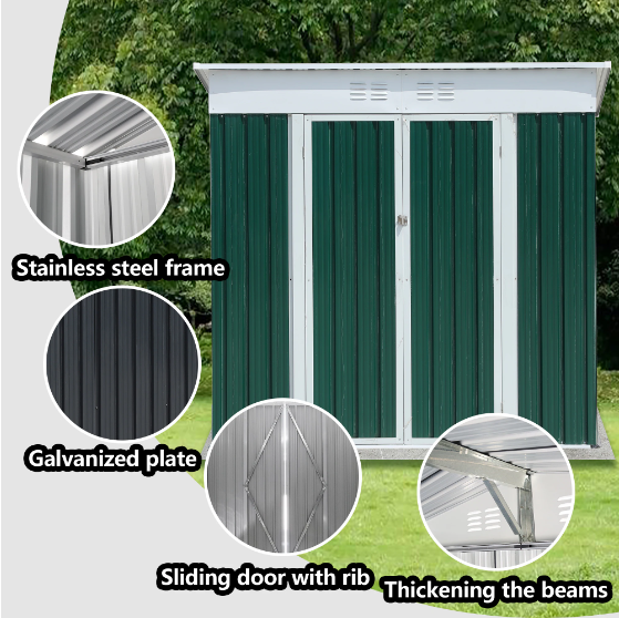 Product Name: 6X4 Green Metal Outdoor Roofed Garden Shed Tool Storage Aluminum Alloy Frame