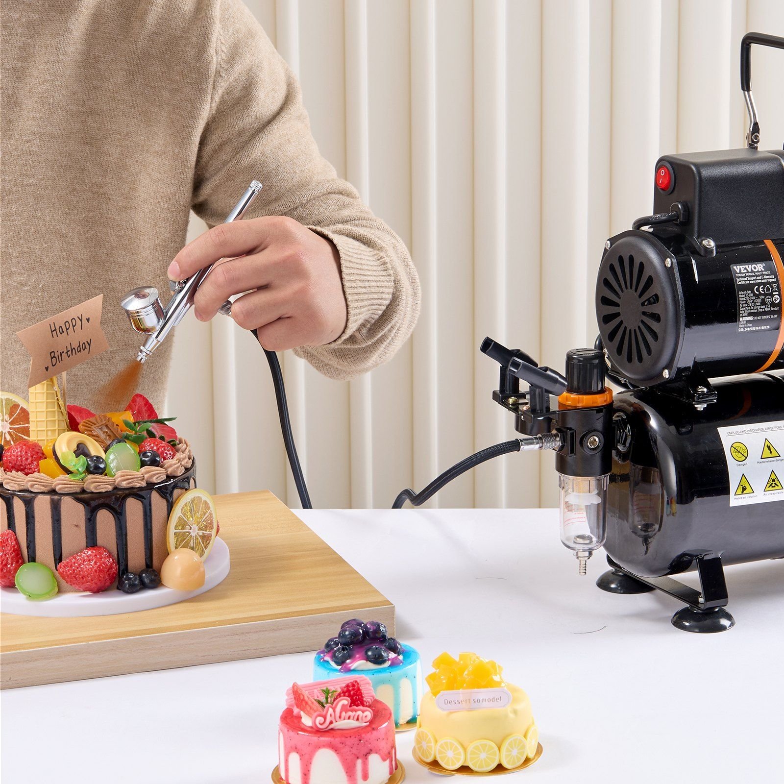 The air brush painting set is FDA food-safe certified, making it suitable for food preparation such as cakes and desserts, ensuring safety for kids. You can also use it for model painting, nail art, makeup spraying, graffiti painting, and body makeup.