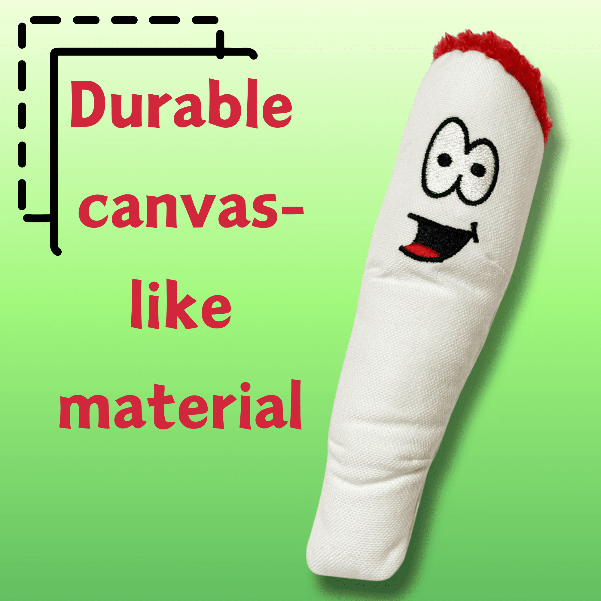 Meet Jay! He is approximately 7" high, canvas and has a built-in squeaker. Your pup will love joining you for 4:20! Jay is a happy joint ready for light play or better yet as a photo prop! Jay's back is blank and looks just like a big; lit joint! Great for funny Instagram pics and video!