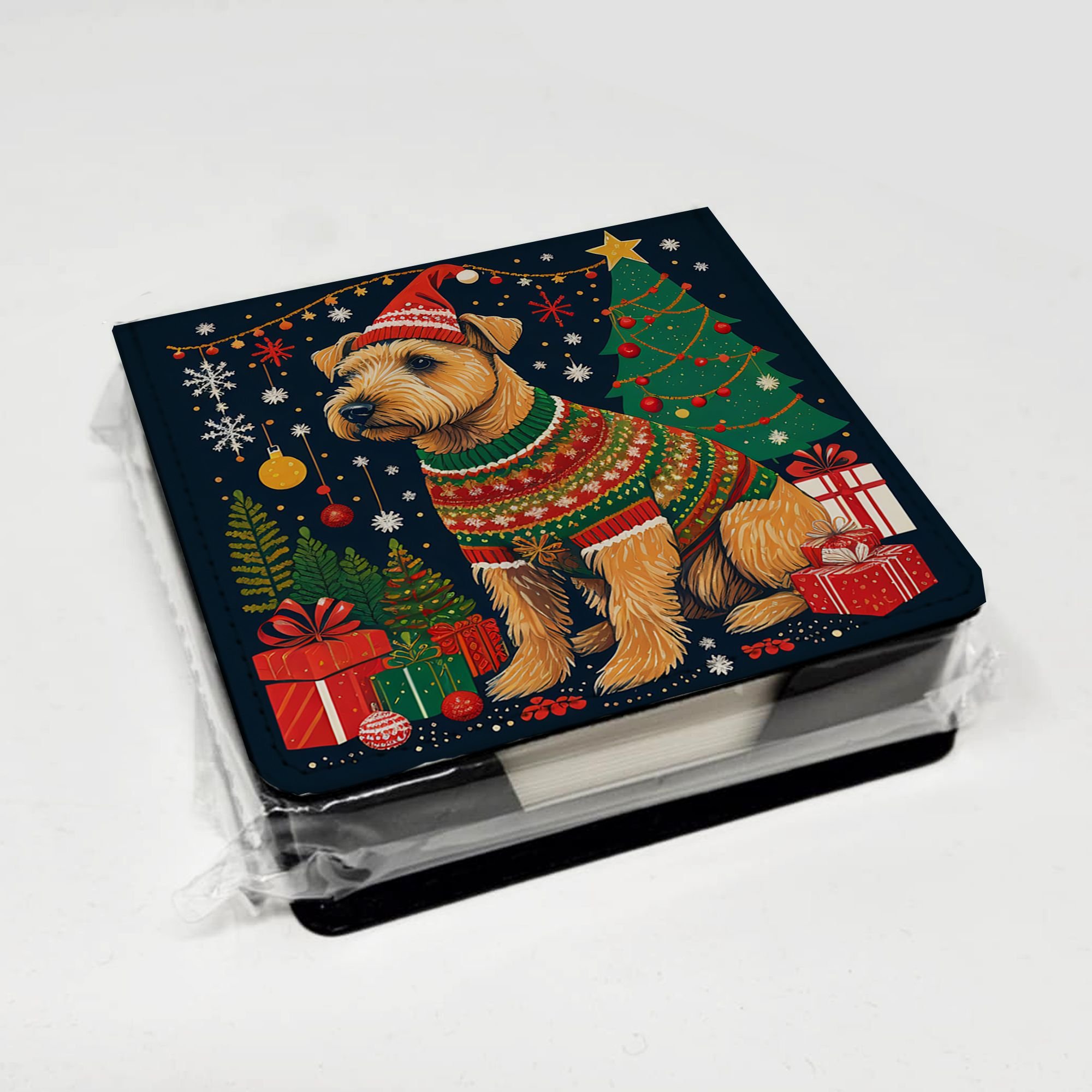 Lakeland Terrier Christmas PU Leather Note Paper Holder with Artist-Designed Cover, Desk Accessory, Office Gift