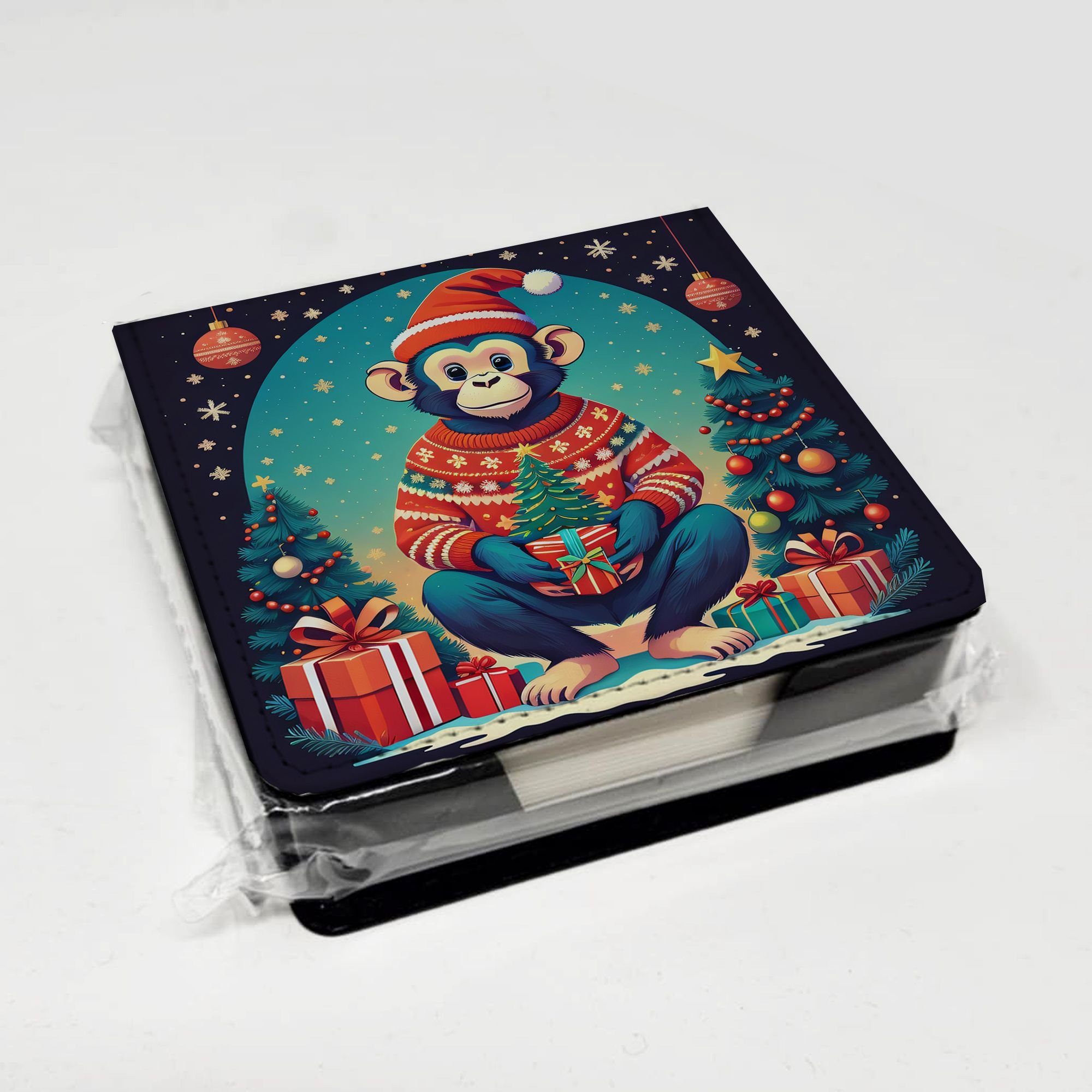 Home > Monkey Christmas PU Leather Note Paper Holder with Artist-Designed Cover, Desk Accessory, Office Gift