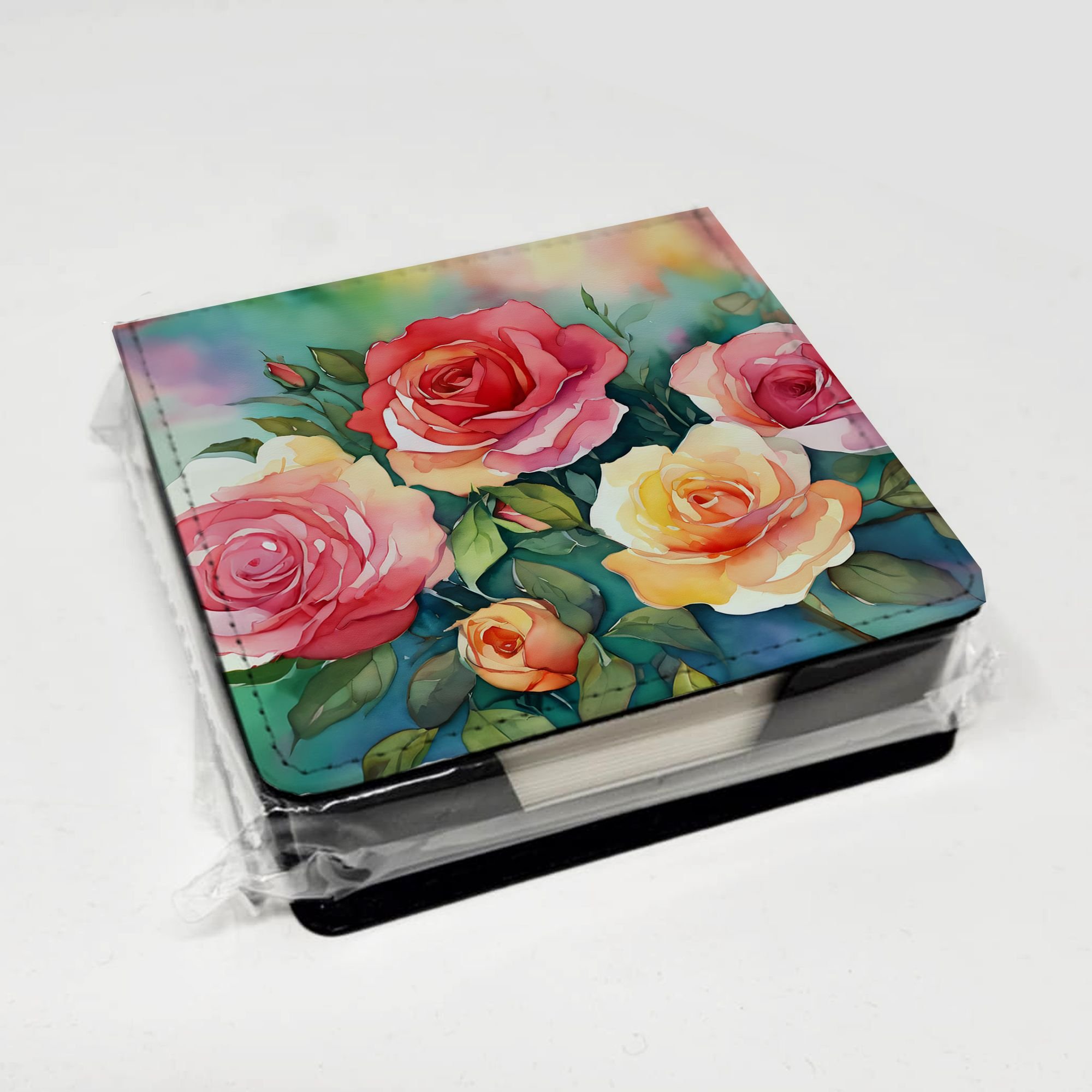 Oklahoma Roses in Watercolor PU Leather Note Paper Holder with Artist-Designed Cover, Desk Accessory, Office Gift