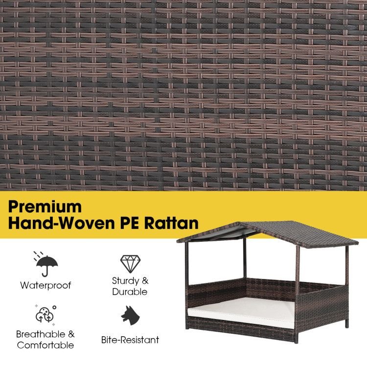 Outdoor Wicker Dog House with Weatherproof Roof
