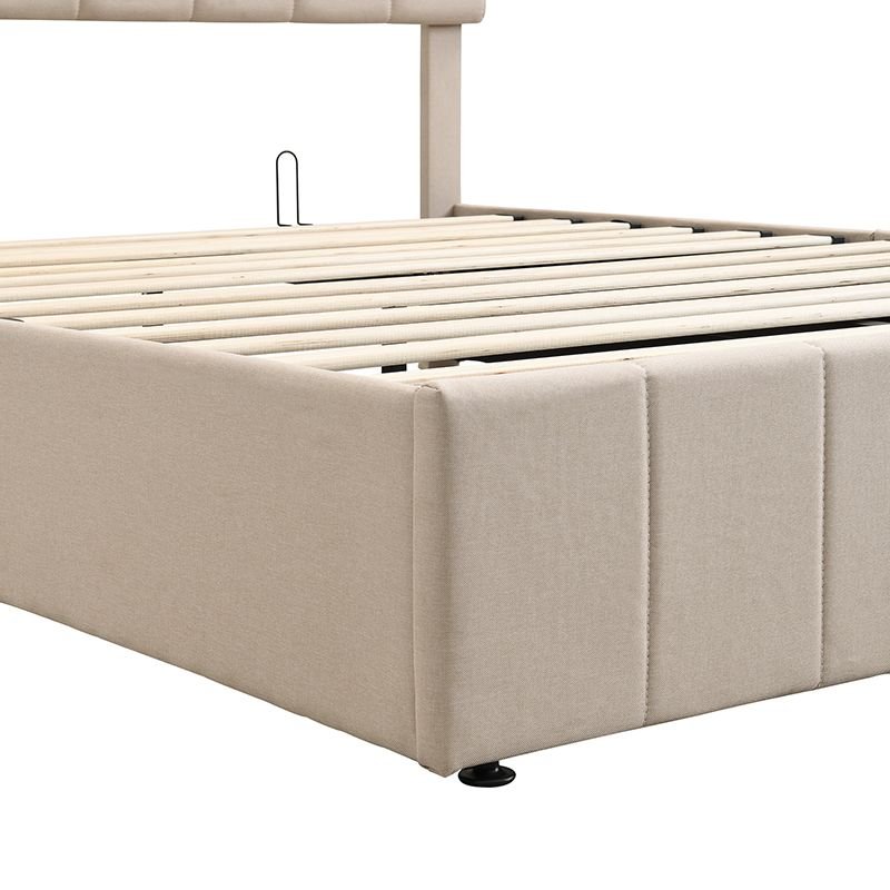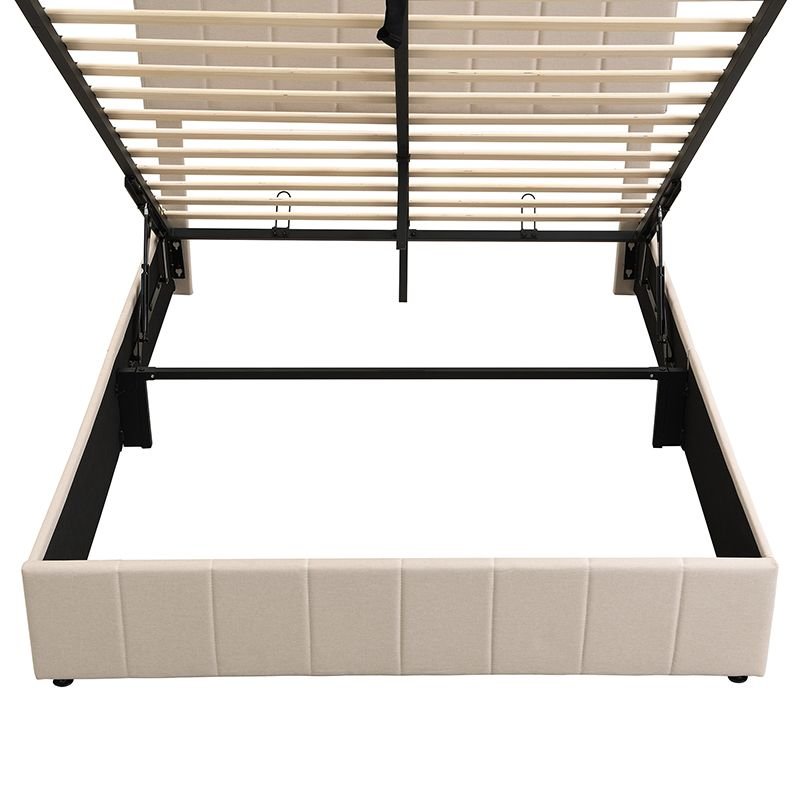 [Elegant Design] Upholstered in carefully-selected linen fabric, in elegant beige, and with docorative details, this platform bed not only suits any home décor, but is timeless in its design. The soft textile bedhead creates coziness, while the single color of the design creates versatility.