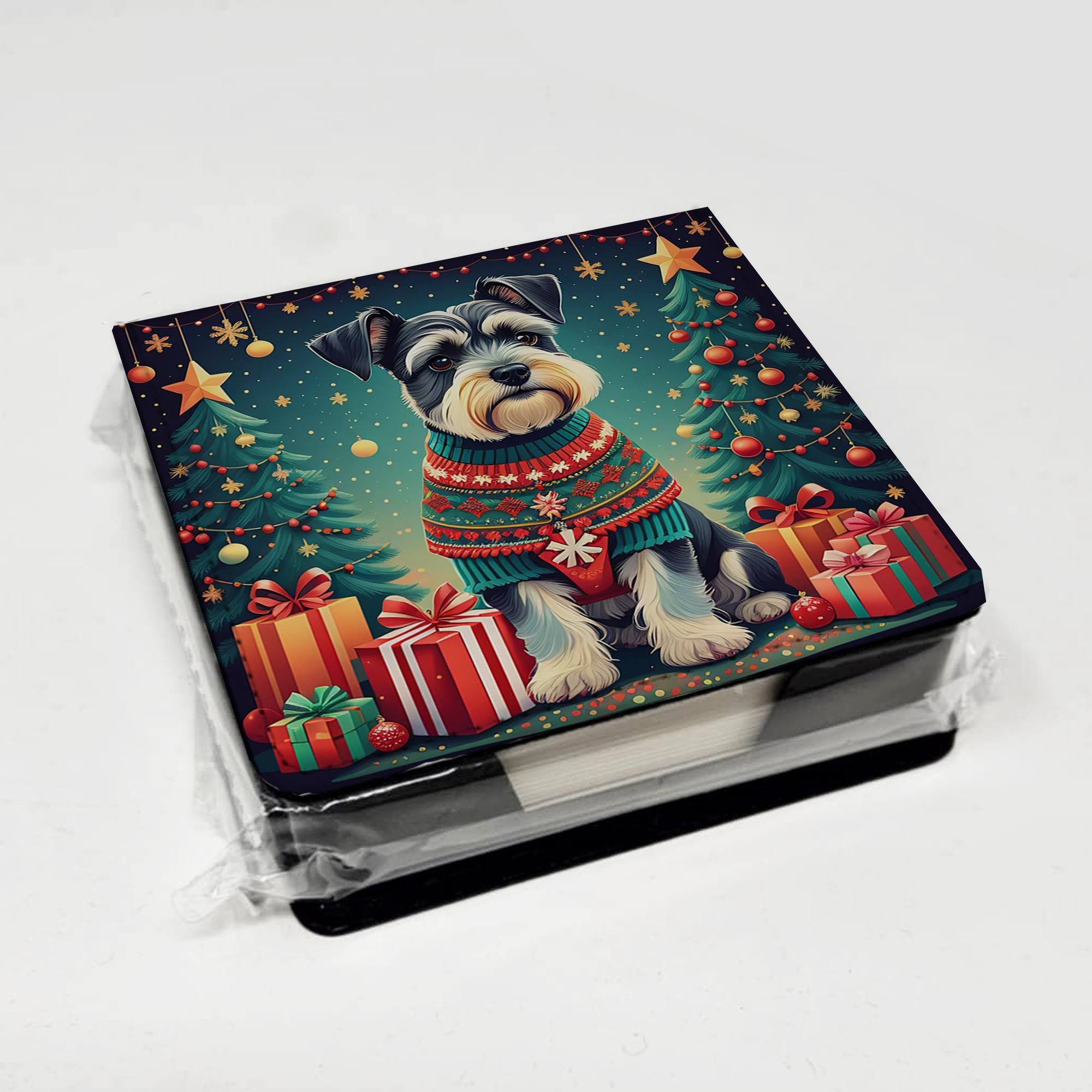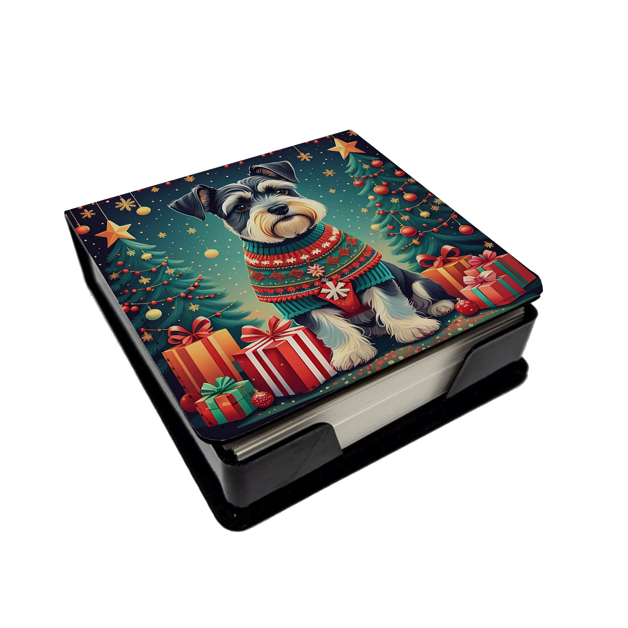 Schnauzer Christmas PU Leather Note Paper Holder with Artist-Designed Cover, Desk Accessory, Office Gift