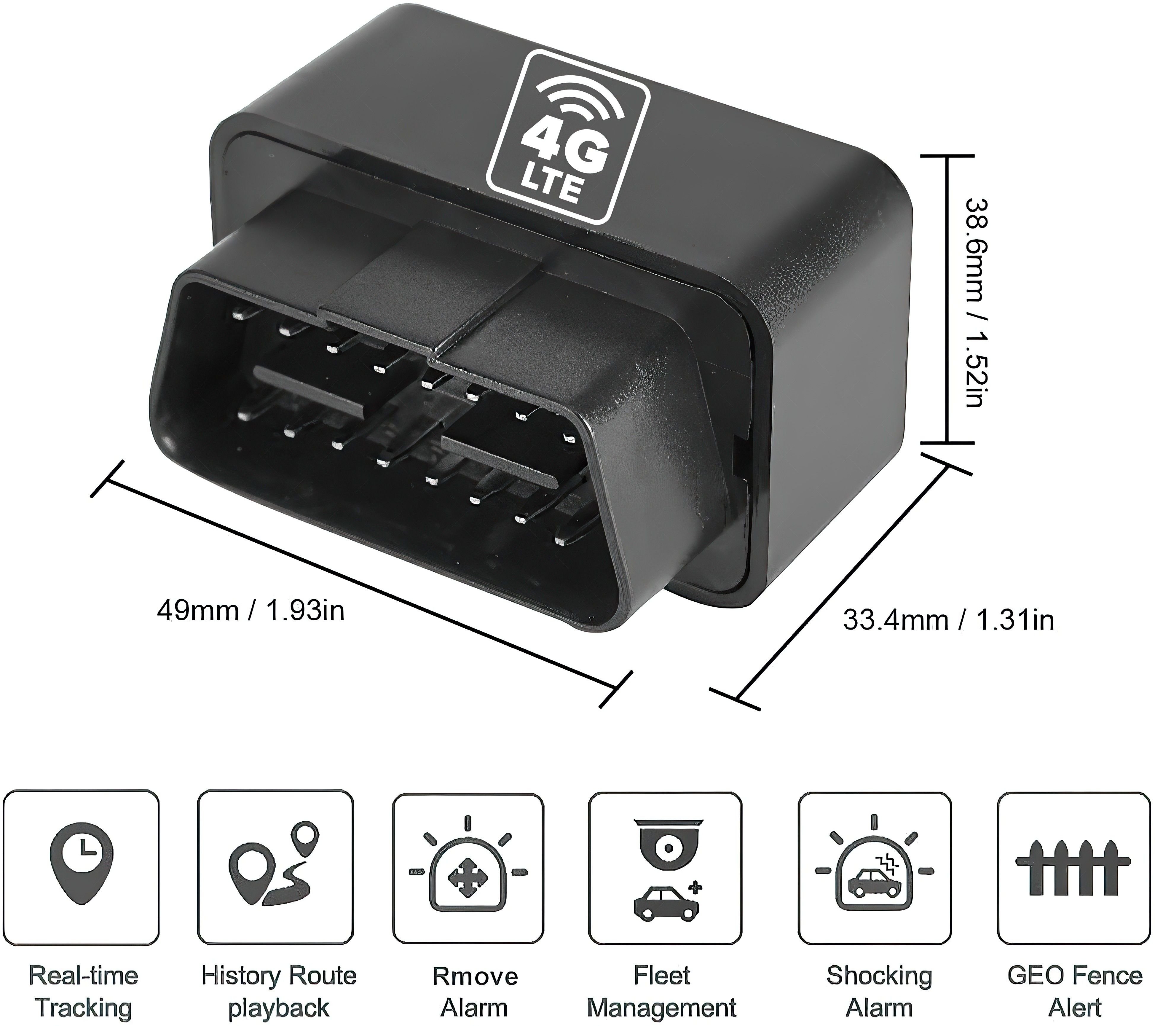 1.Low Profile - Smallest OBD you will ever find, at just 1.8Lx0.9Wx0.1D inch (with provided flat ribbon cable) and 1.9Lx1.2Wx0.9D inch (without ribbon cable). This is nearly flush with your existing OBD port, as if the GPS Tracker was never installed. This coupled with 4G-Lte Global Coverage, track your vehicle life cross border. Keep peace of mind on your ride anyplace, anywhere, all the time...