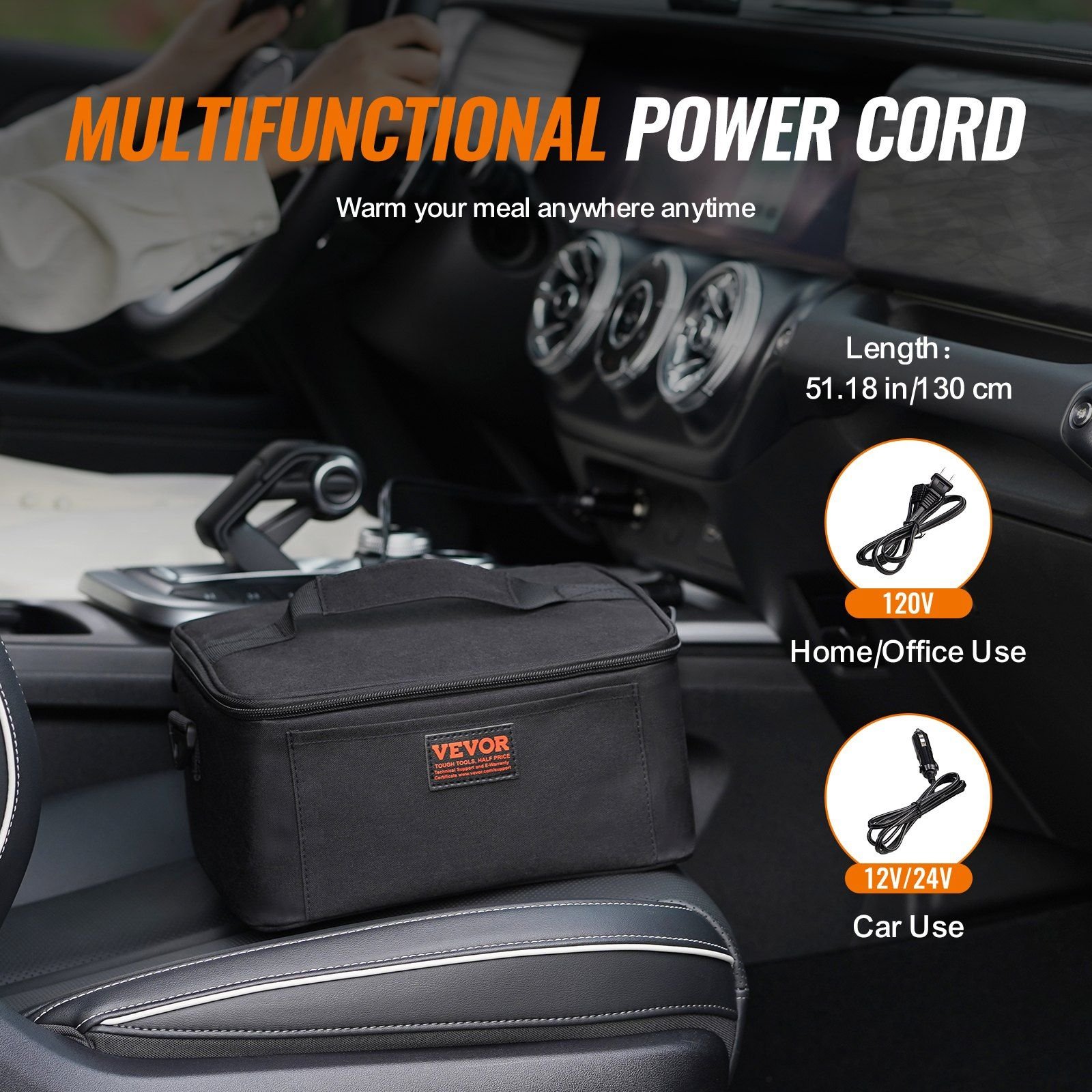 1.3-in-1 Portable Oven: VEVOR 3-in-1 portable food warmer support both AC 110-120V home/office and DC 12V/24V car/truck use. Simply place your food box inside, plug it into a power source, and let it work its magic. Perfect for home/office/car truck use, travel, camping, work, etc.