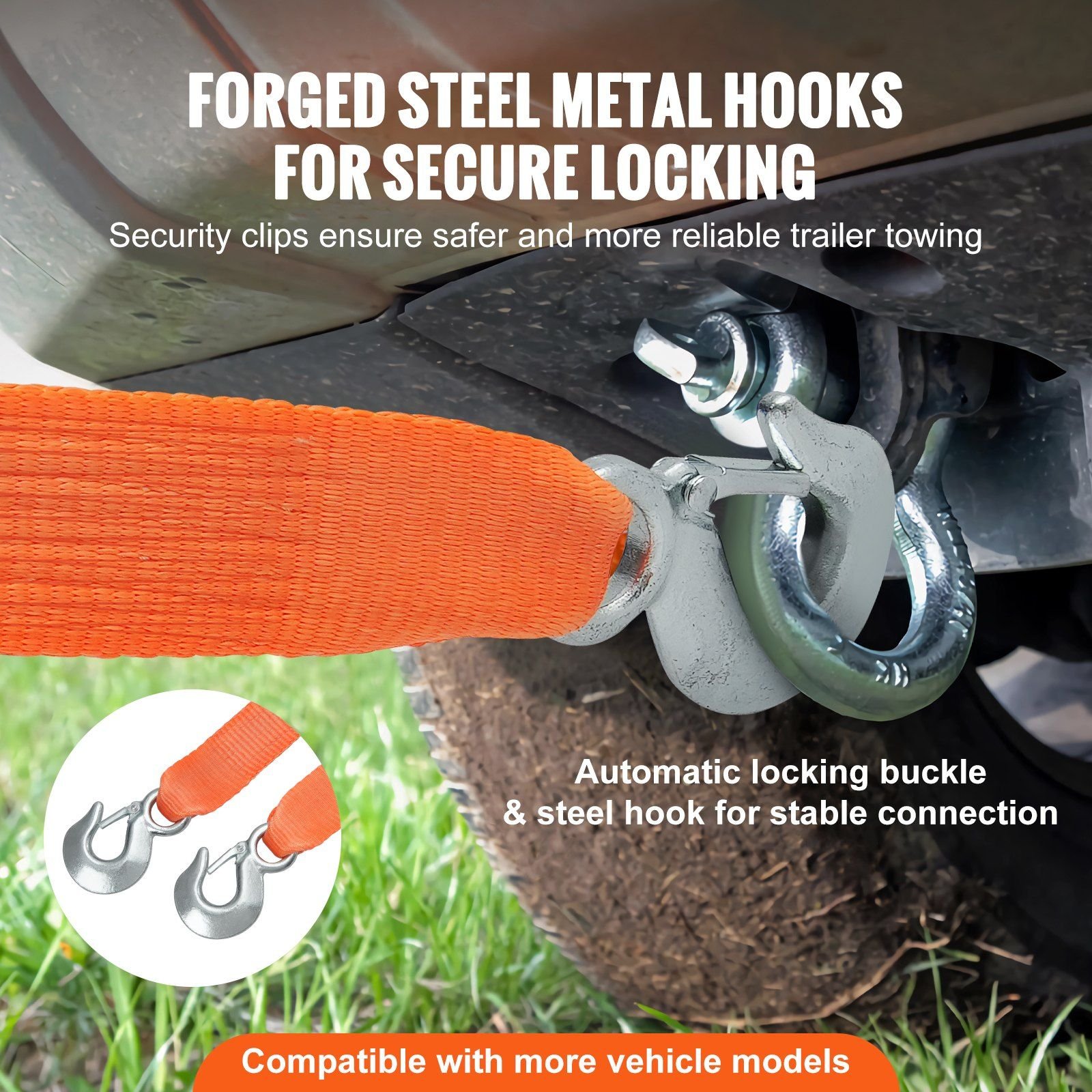 1.Heavy-Duty Vehicle Tow Strap: Our tow strap is a 2-inch wide, 20-foot long powerhouse boasting a robust 17,000 lbs capacity. With strong UV protection and top-notch durability, it's your trusty companion for pulling vehicles out of tight spots in extreme outdoor conditions, providing reliable rescue support.