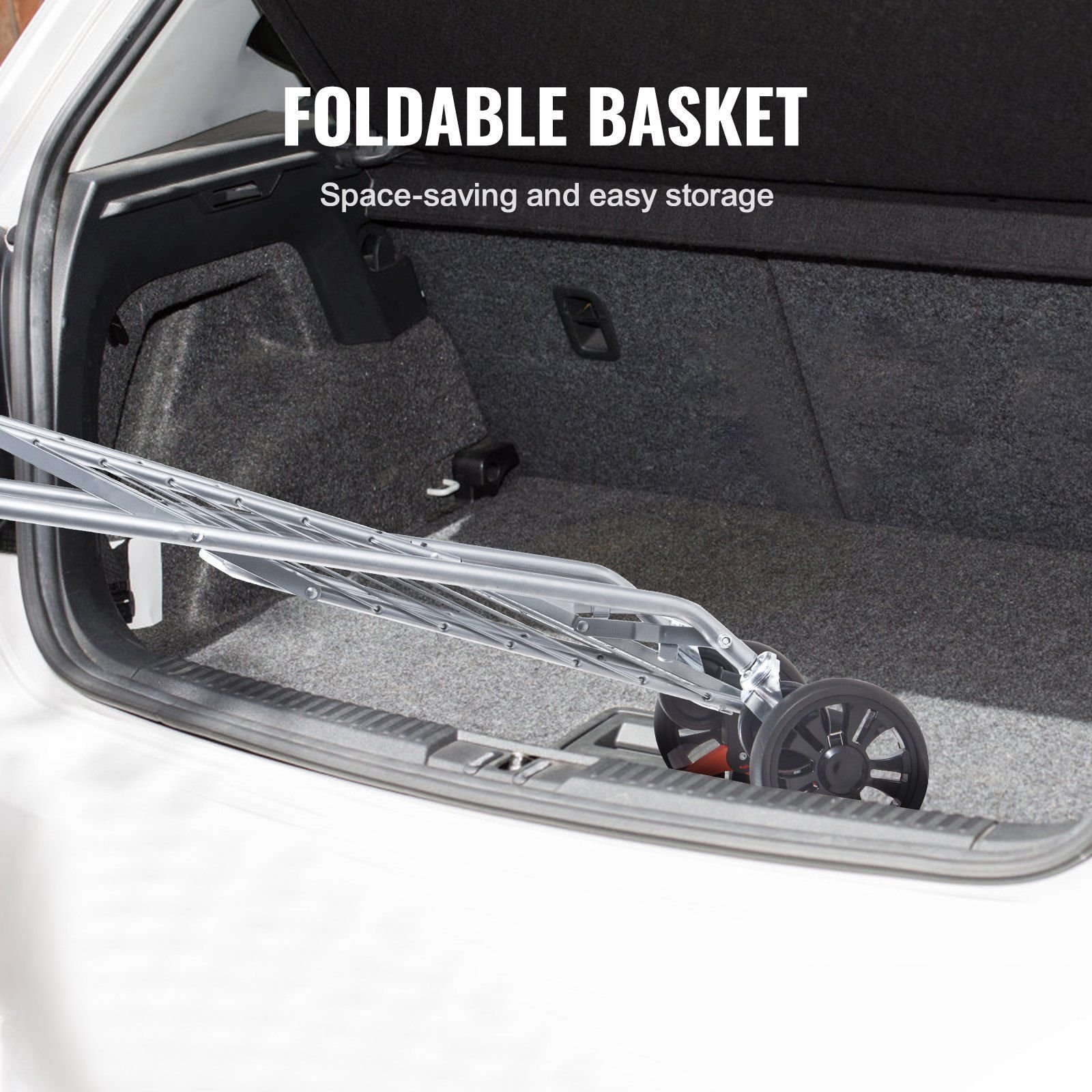 Crafted with sturdy metal, this foldable utility cart is all about high capacity. Its sizeable rear wheels and broad load-bearing structure ensure stability. Make family shopping trips a walk in the park.