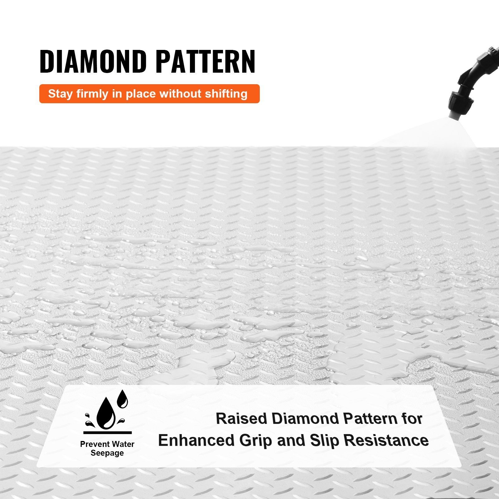 3.Waterproof and Leak-Proof: Our garage mat features a 3D diamond pattern backing to effortlessly handle water stains and spills, preventing them from seeping through. After use, your floor will remain spotless, looking as good as new.