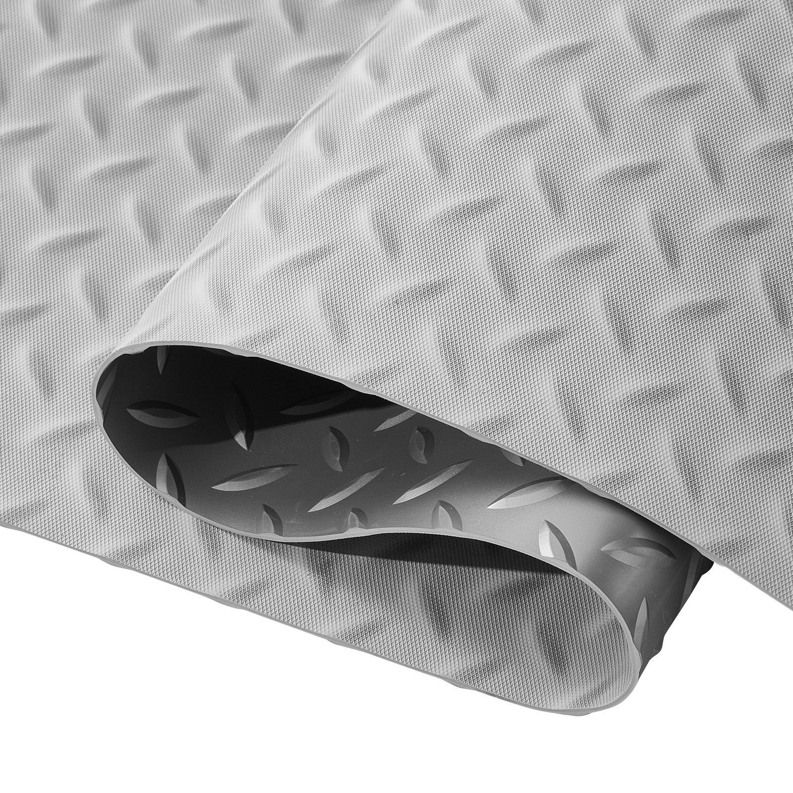 The garage mat effectively intercepts spills, reduces dirt buildup, and is durable. The surface and bottom feature 3D diamond patterns for a comprehensive grip on the floor.