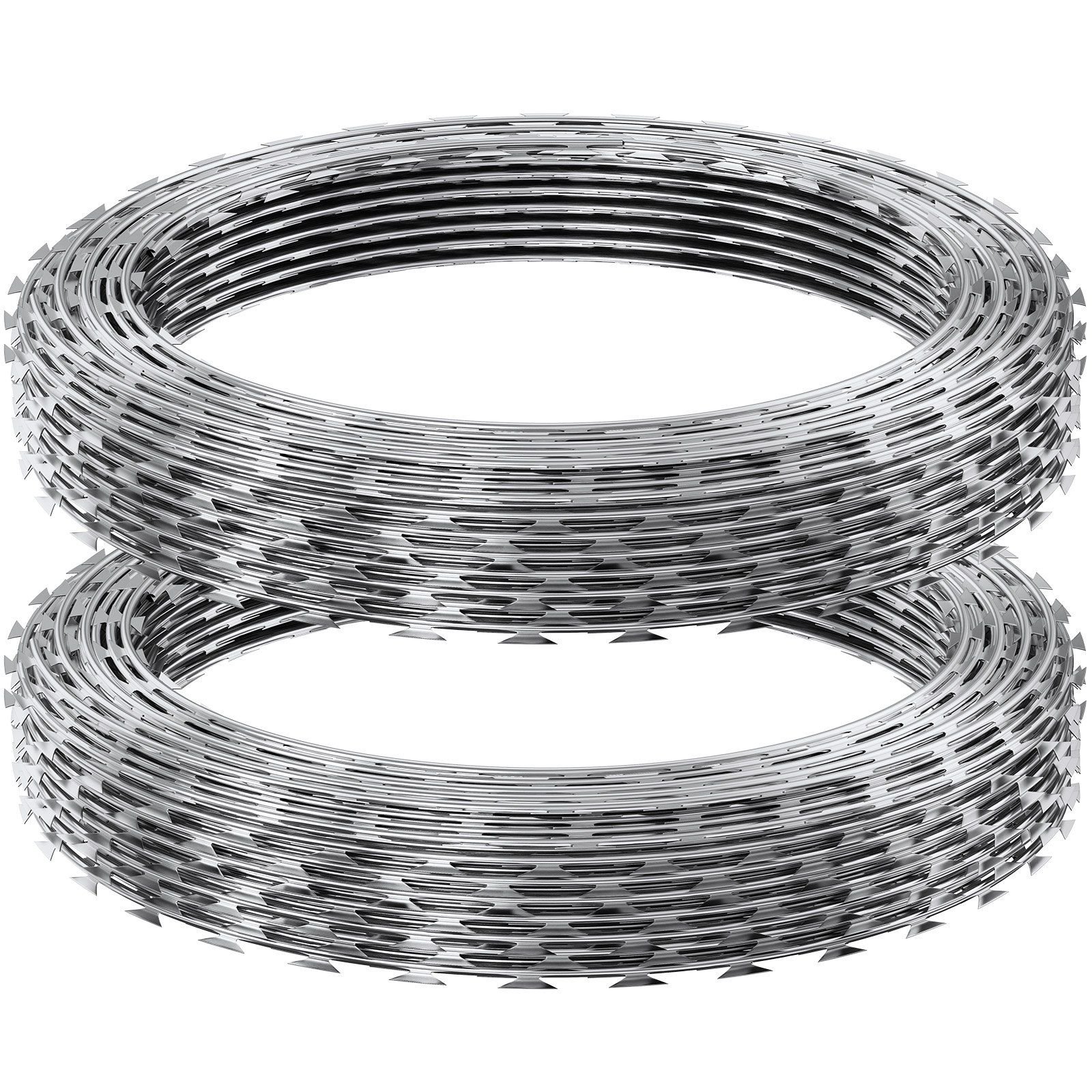 VEVOR Razor Wires, 98 ft Razor Barbed Wire, 2 Rolls Razor Wire Fencing Razor Fence, Razor Ribbon Barbed Wire Galvanized Razor Wire Fence
