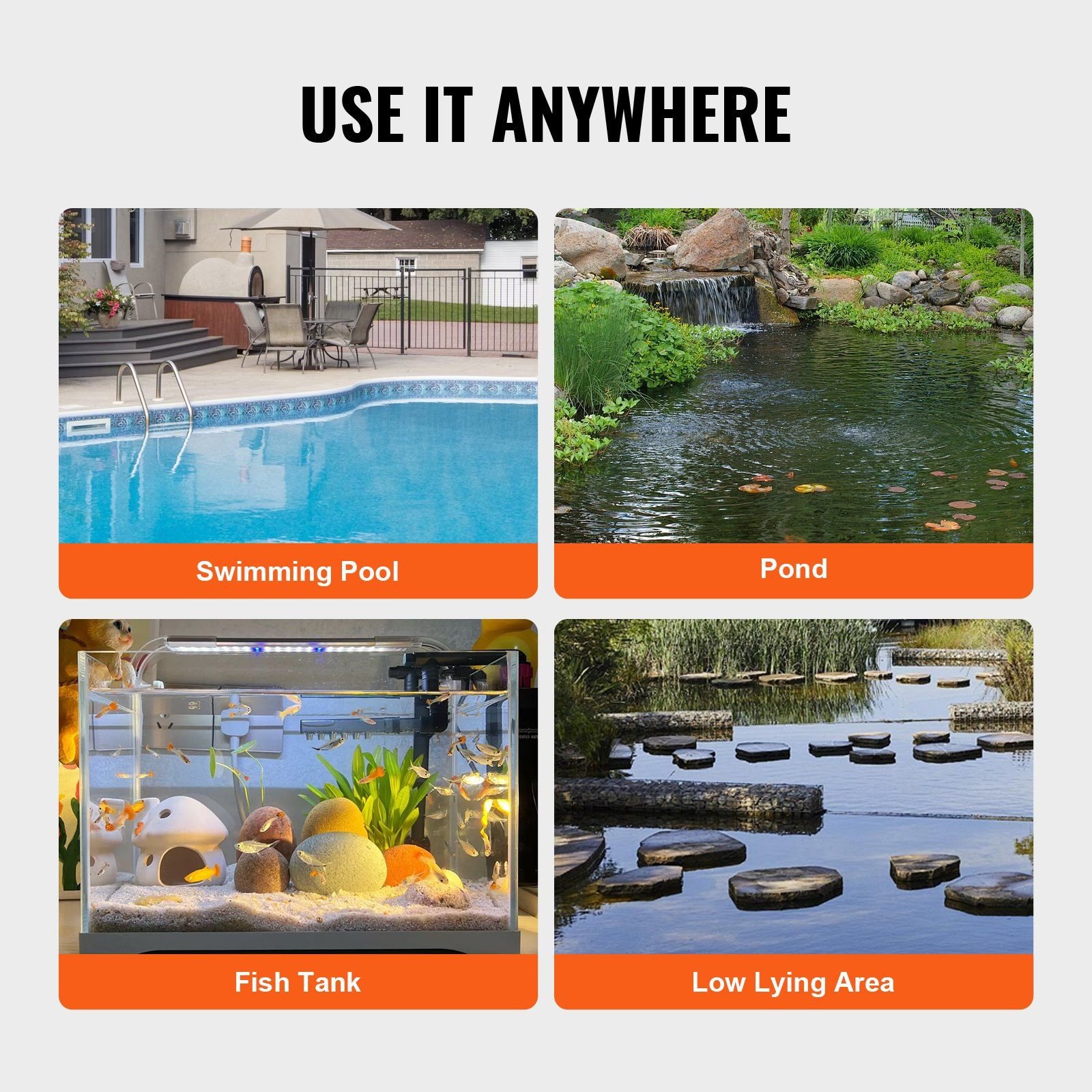 5.Versatile Performance: From ponds to pools, our submersible pump has you covered. It's perfect for gardens, water channels, low spots – you name it. Whatever your water needs, our pump delivers the solution.